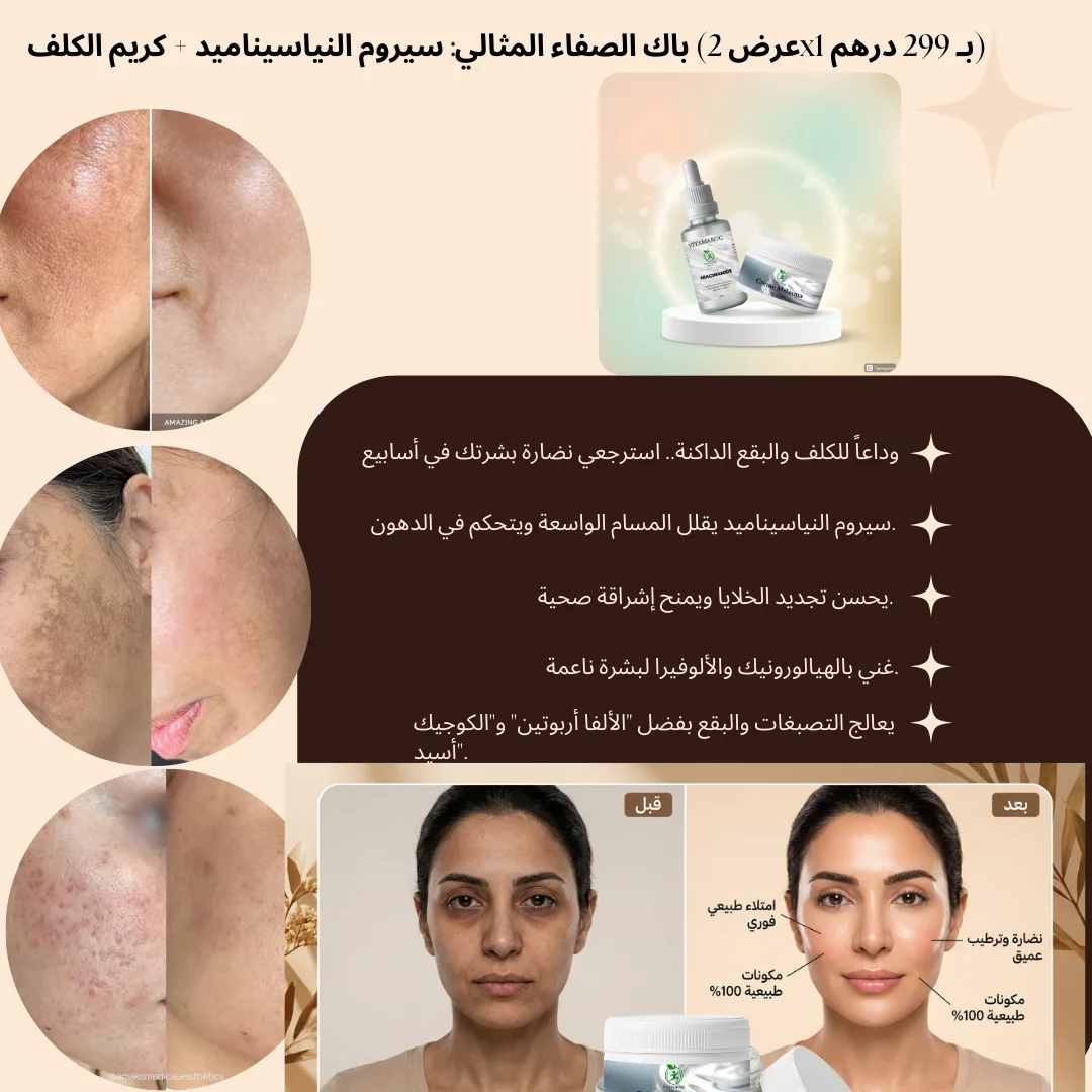 بشرة صافية وبلارة مع باك الصفاء المتكامل: النياسيناميد وكريم الكلف